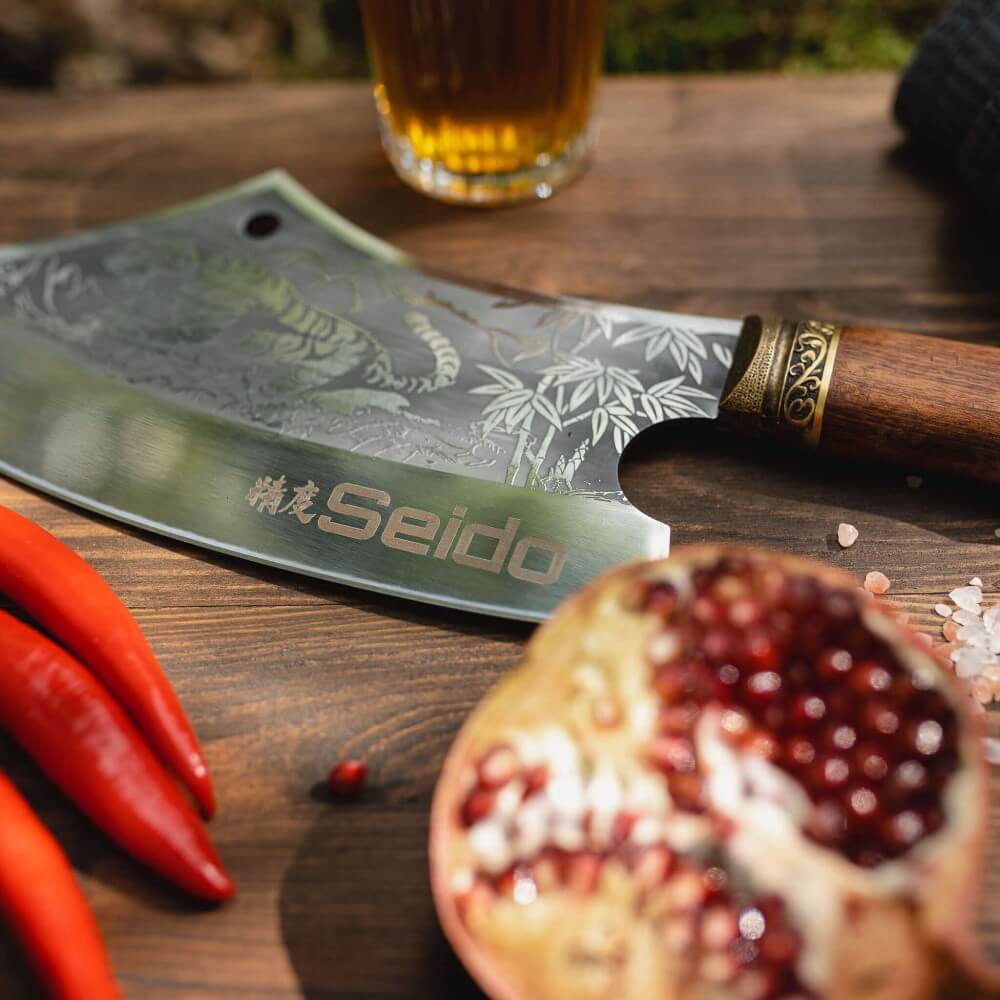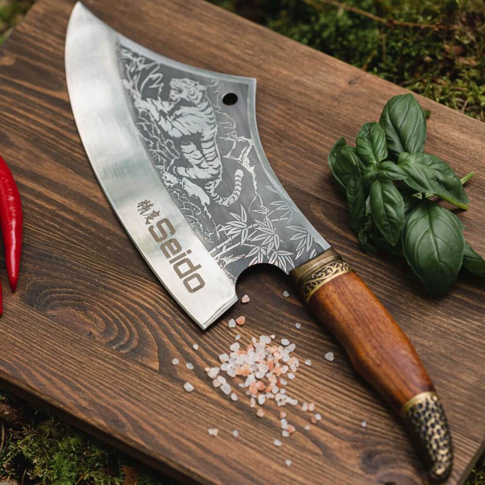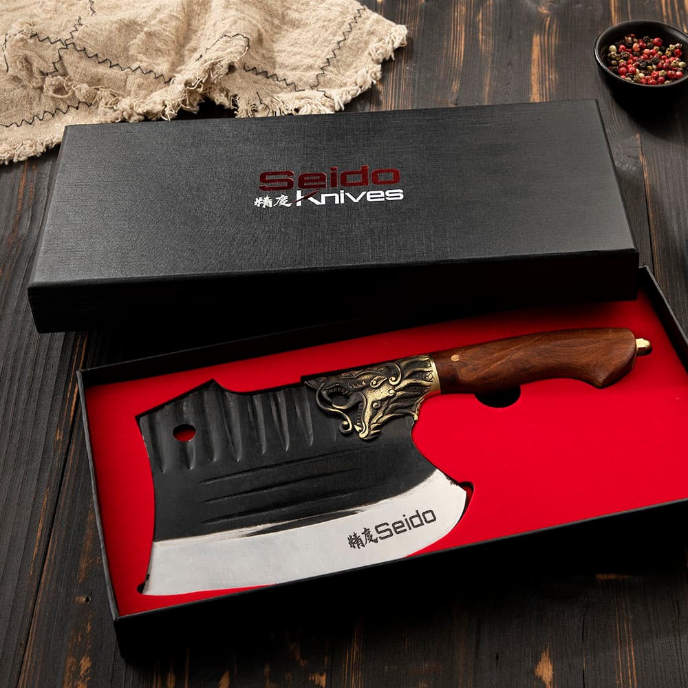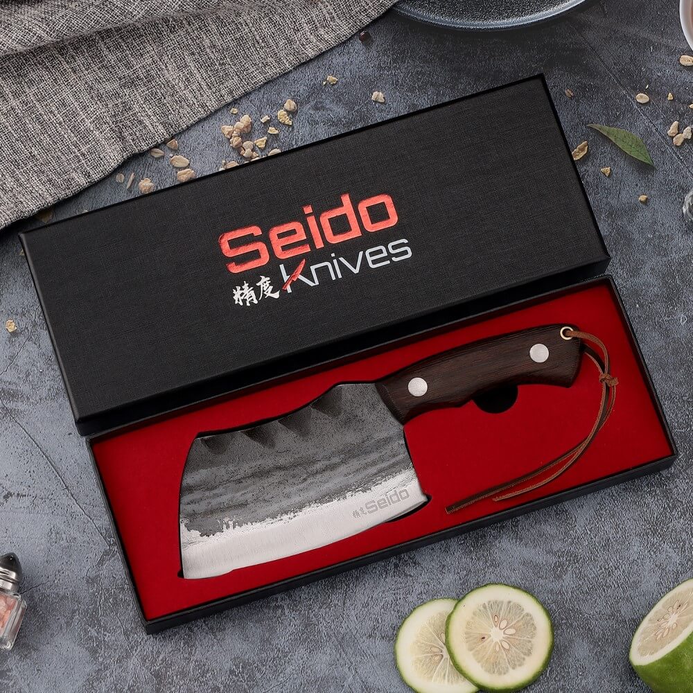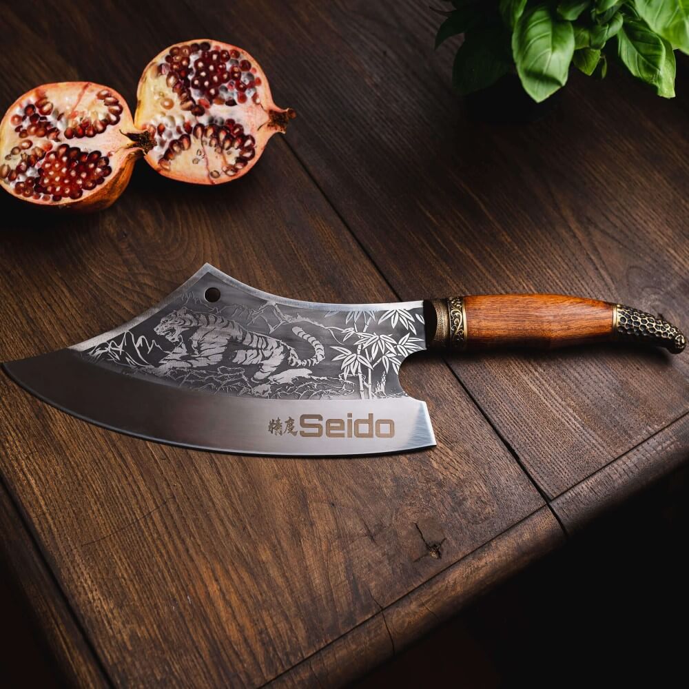 Cleavers are among the biggest kitchen knives you can buy today. Often used by butchers and professional cooks, this type of knife from Seido Knives allows you to quickly break down a chicken and divide other large cuts into smaller pieces.