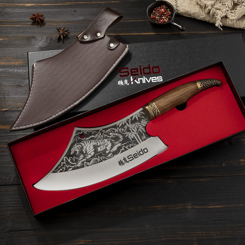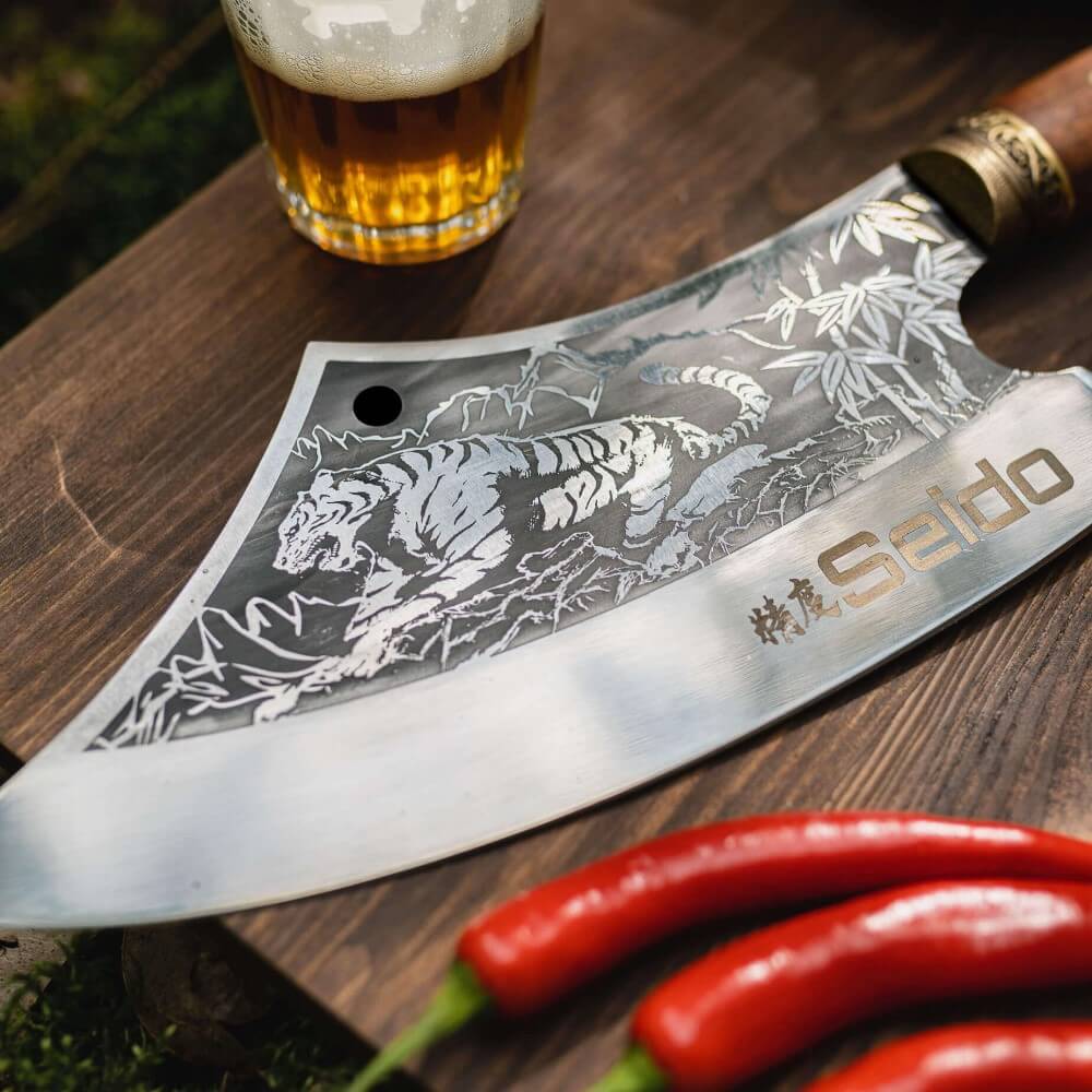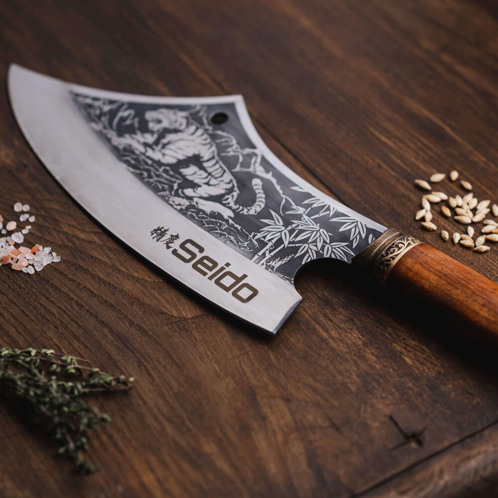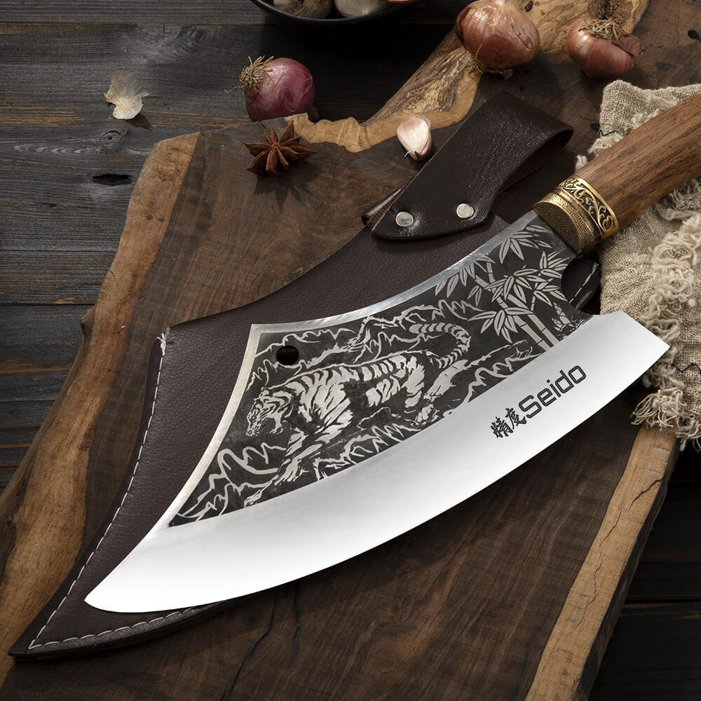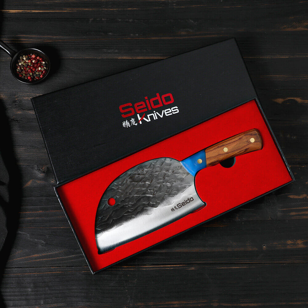 Cleavers are among the biggest kitchen knives you can buy today. Often used by butchers and professional cooks, this type of knife from Seido Knives allows you to quickly break down a chicken and divide other large cuts into smaller pieces.