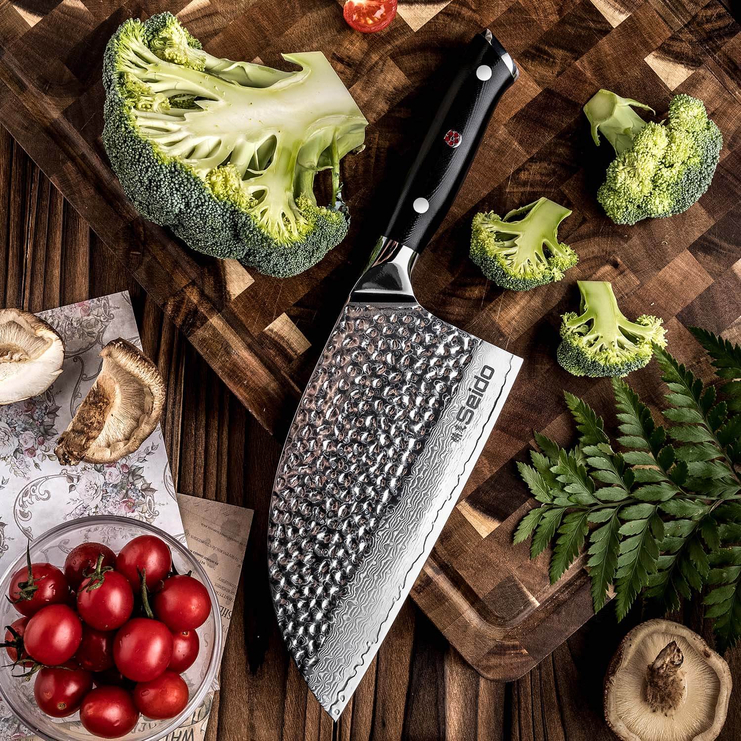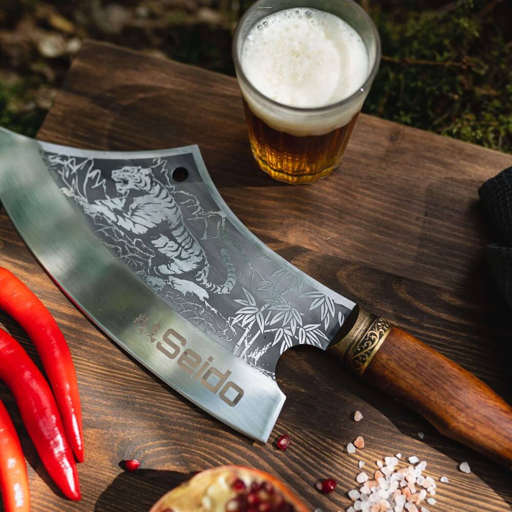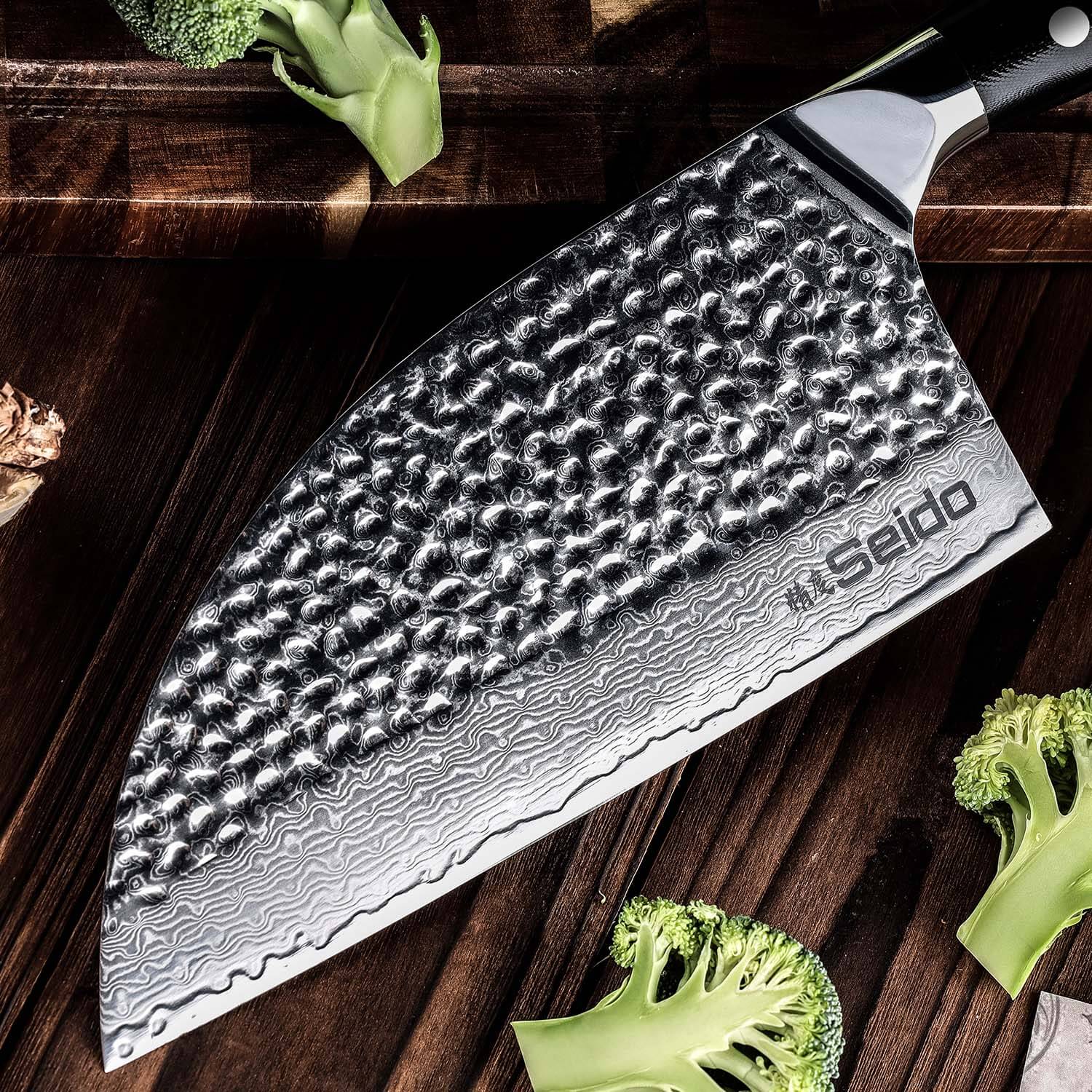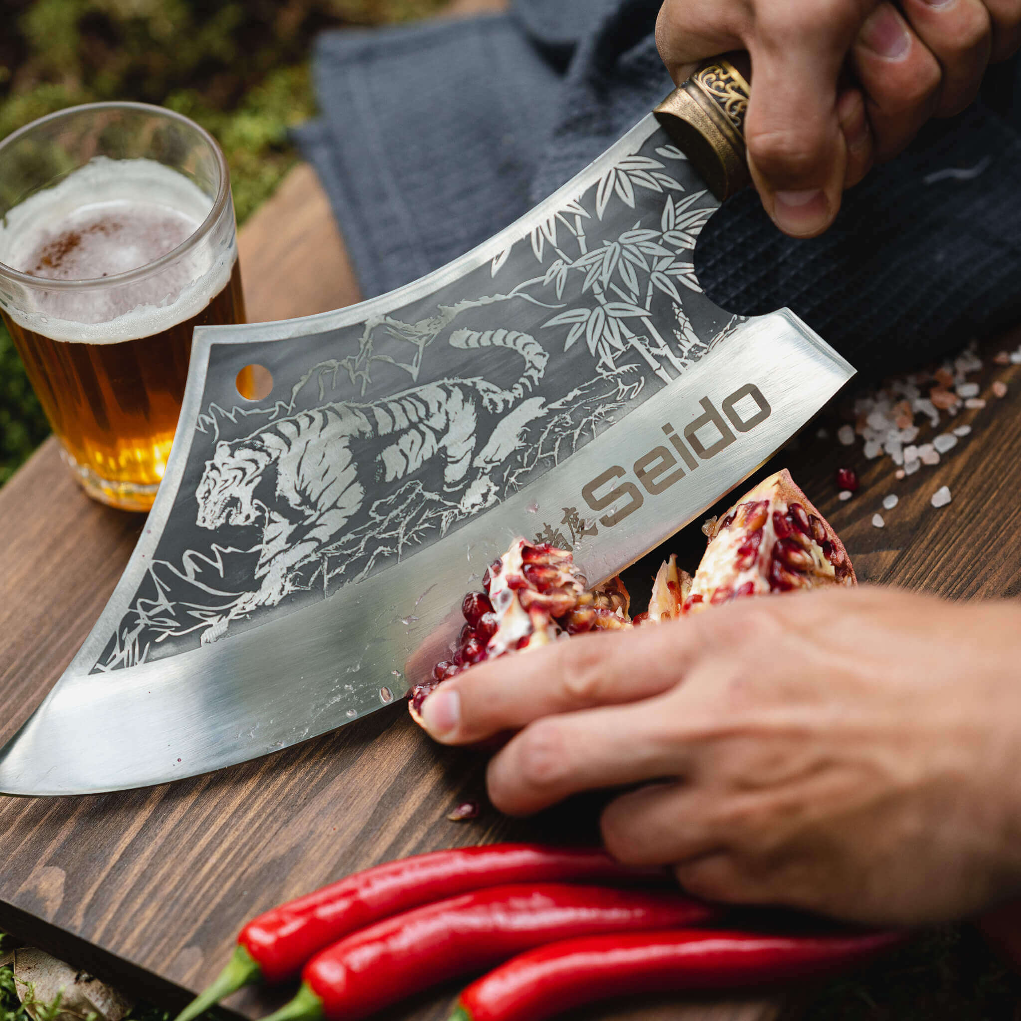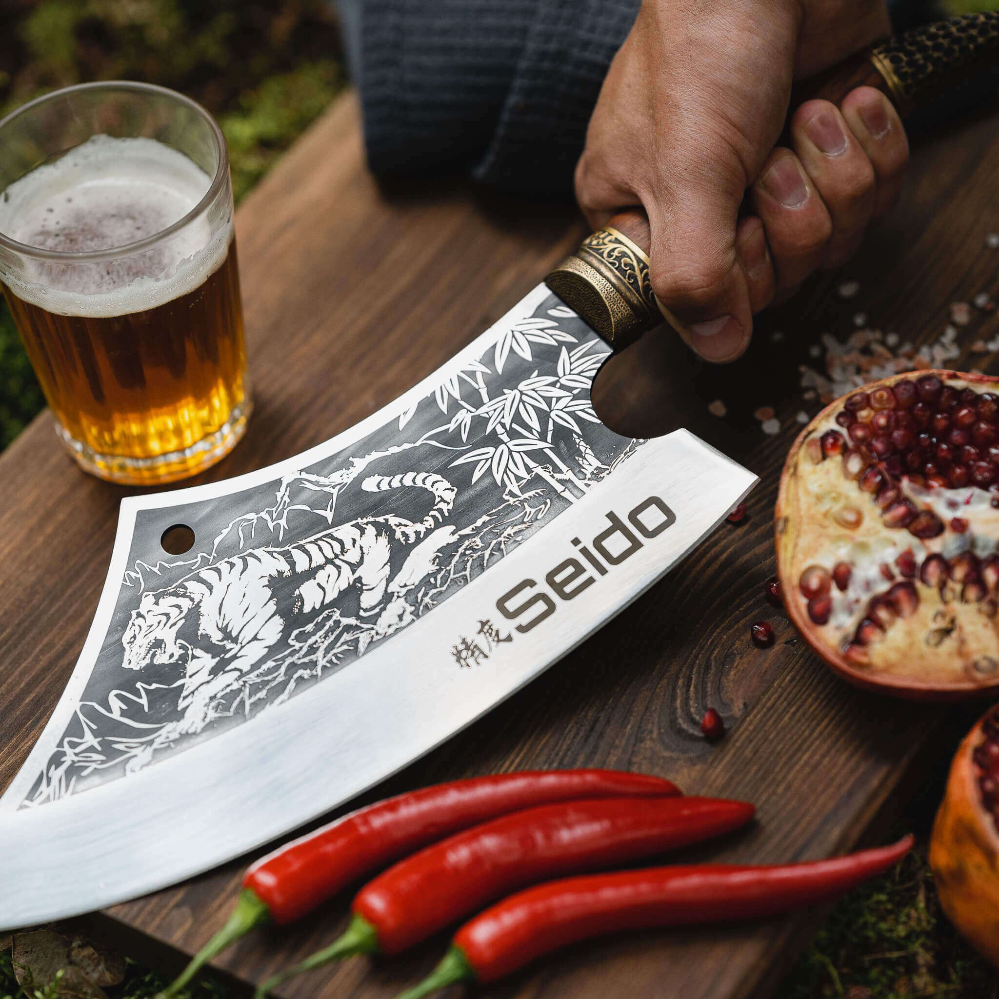 Cleavers are among the biggest kitchen knives you can buy today. Often used by butchers and professional cooks, this type of knife from Seido Knives allows you to quickly break down a chicken and divide other large cuts into smaller pieces.