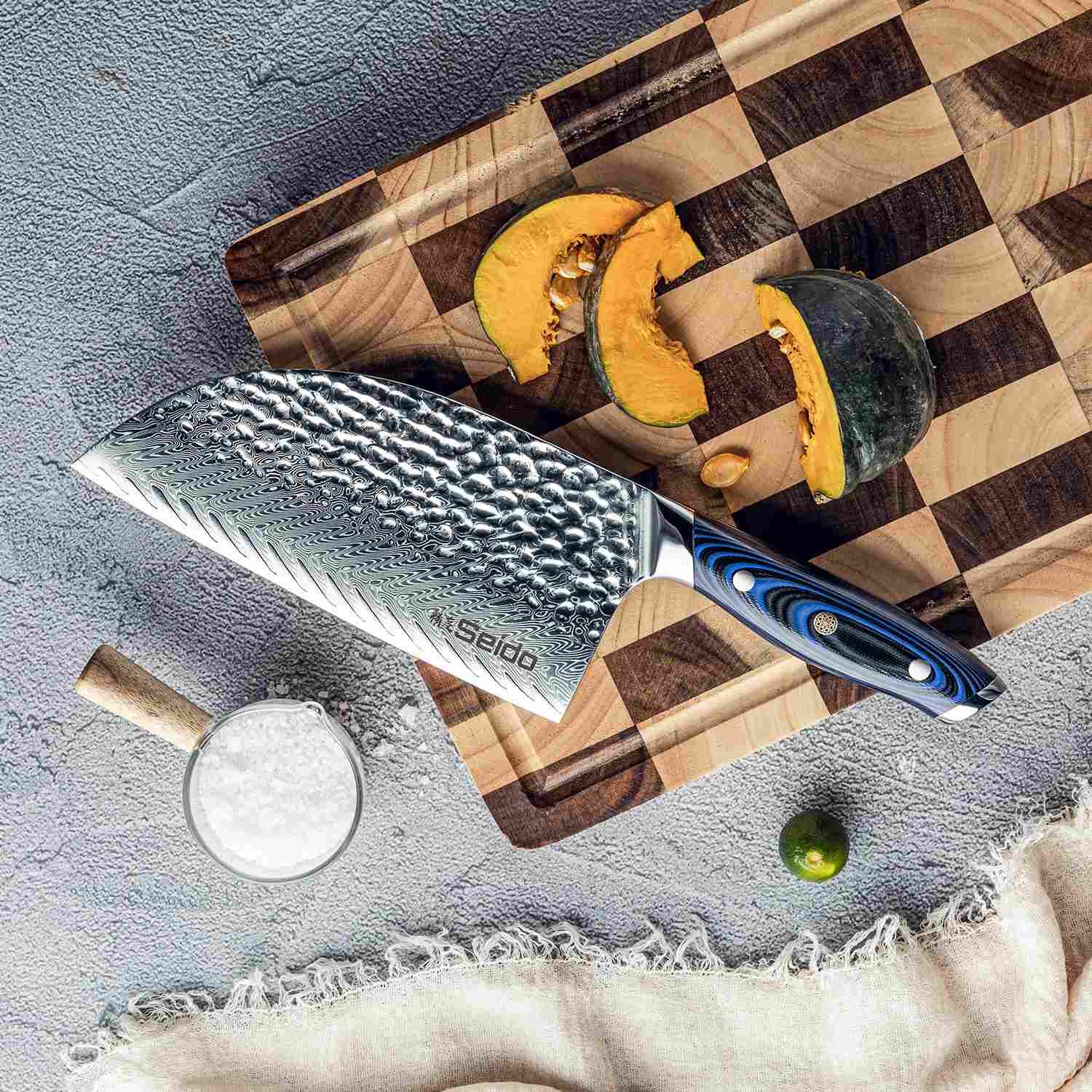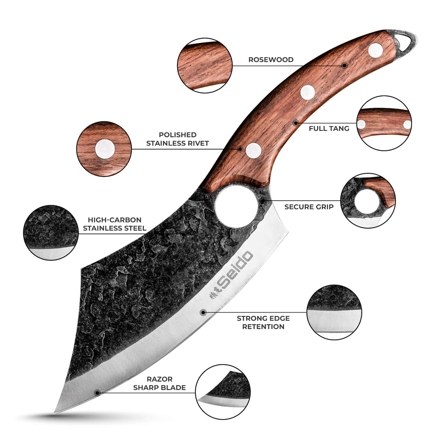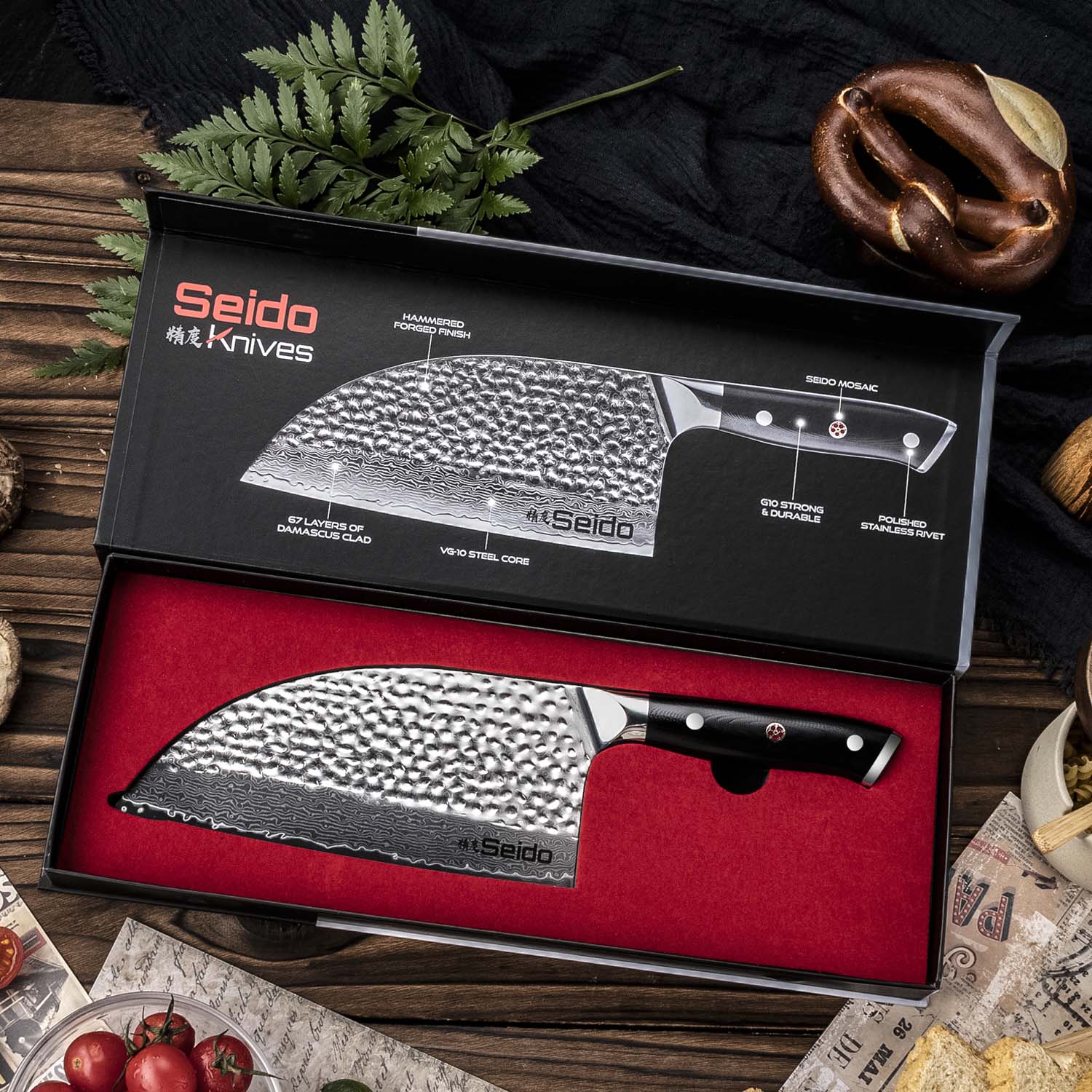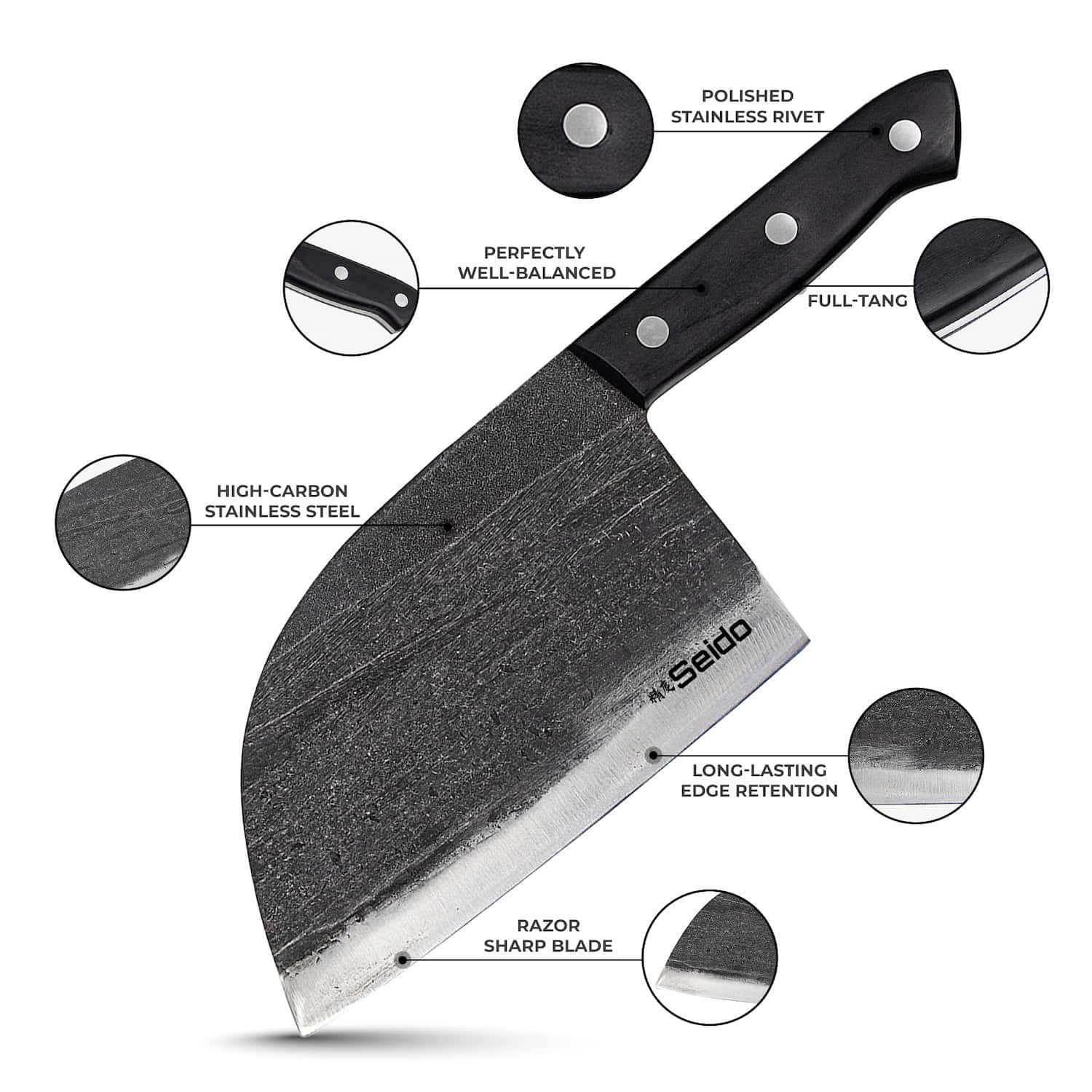 Cleavers are among the biggest kitchen knives you can buy today. Often used by butchers and professional cooks, this type of knife from Seido Knives allows you to quickly break down a chicken and divide other large cuts into smaller pieces.