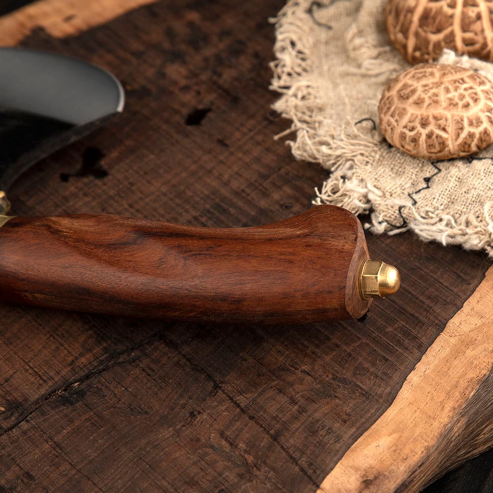 Cleavers, also known as butcher knives, have a large, flat metal blade and a small handle that is usually made of wood. They have a thick or broadside that allows you to prep ingredients like crushed garlic. Most people use cleaver knives to break down big roasts and sides of beef and to cut through thick bones.