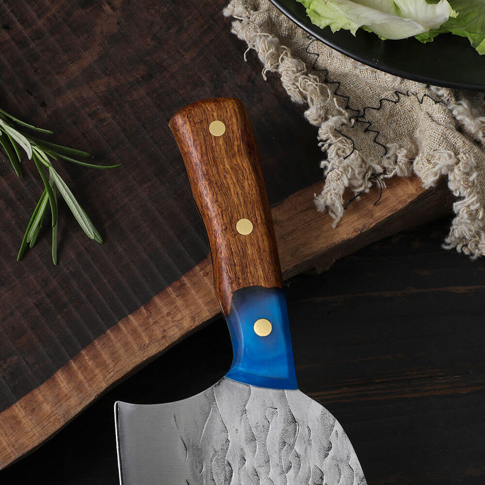 The best way to store a cleaver knife like those from our Caveman Series is in a knife block. Storing one in a crowded drawer increases the risk of damaging the blade. You can also use a magnetic storage strip, which is helpful if you use the knife often. To clean a cleaver, use ordinary dish soap and warm water. Dry it with a cloth before you put it away. Never use a dishwasher, as it can significantly damage the blade.