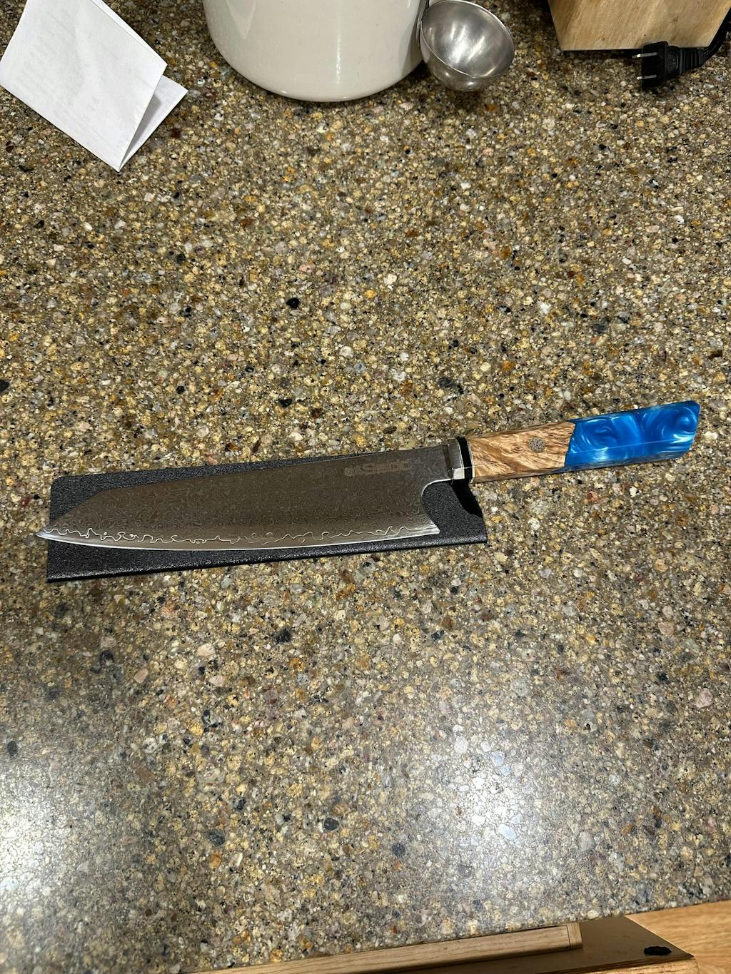 - Handle Material: Epoxy Blue Resin Stabilized Wood
