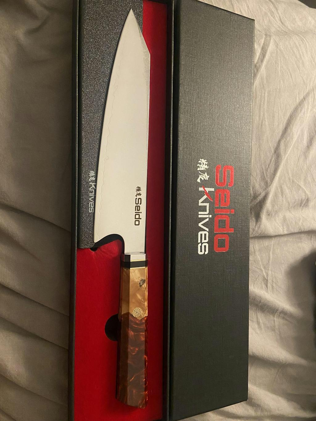 "Fantastic knife! I absolutely love my Seido Kiritsuke knife! It's the SHAREPEST and most RELIABLE knife I've ever had! It's well balanced and can cut through anything like butter. The price and quality of this Damascus knife is undeniable!"