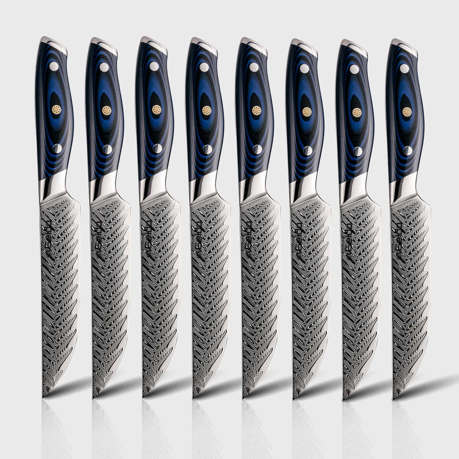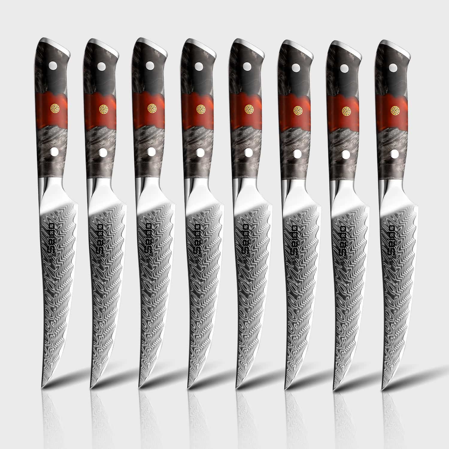 One of the most challenging choices when shopping for Seido steak knives is whether you want a straight or serrated edge. These steak knives feature pakkawood handles, making them look elegant on your dinner table. In addition, they slice through steak easily thanks to their 15-degree-double-beveled blades.