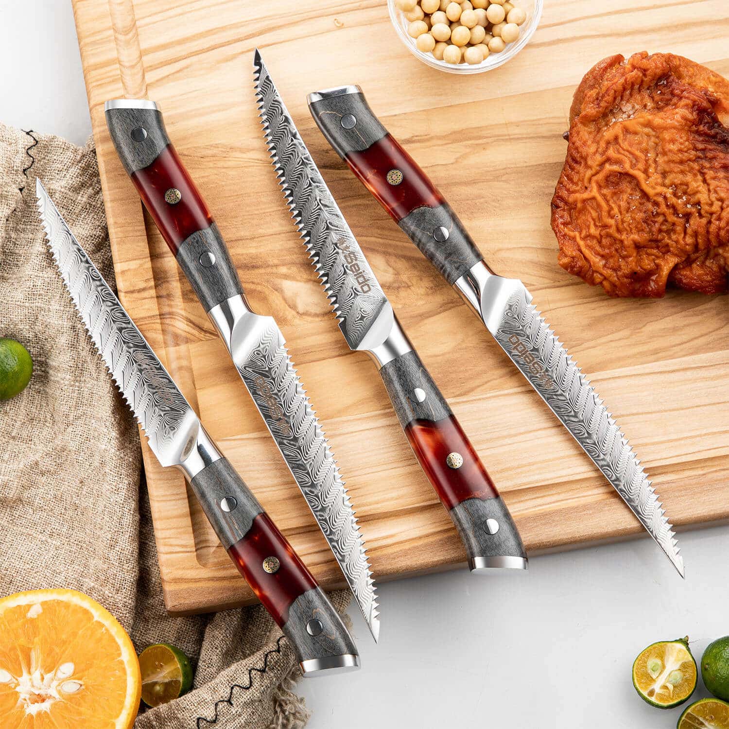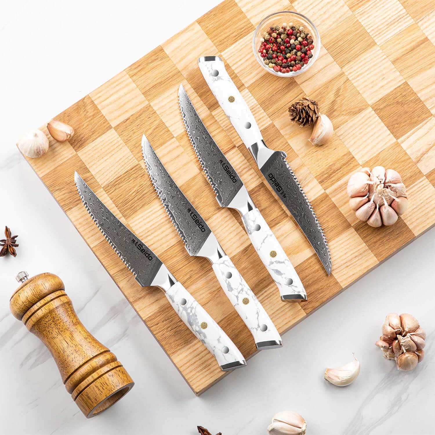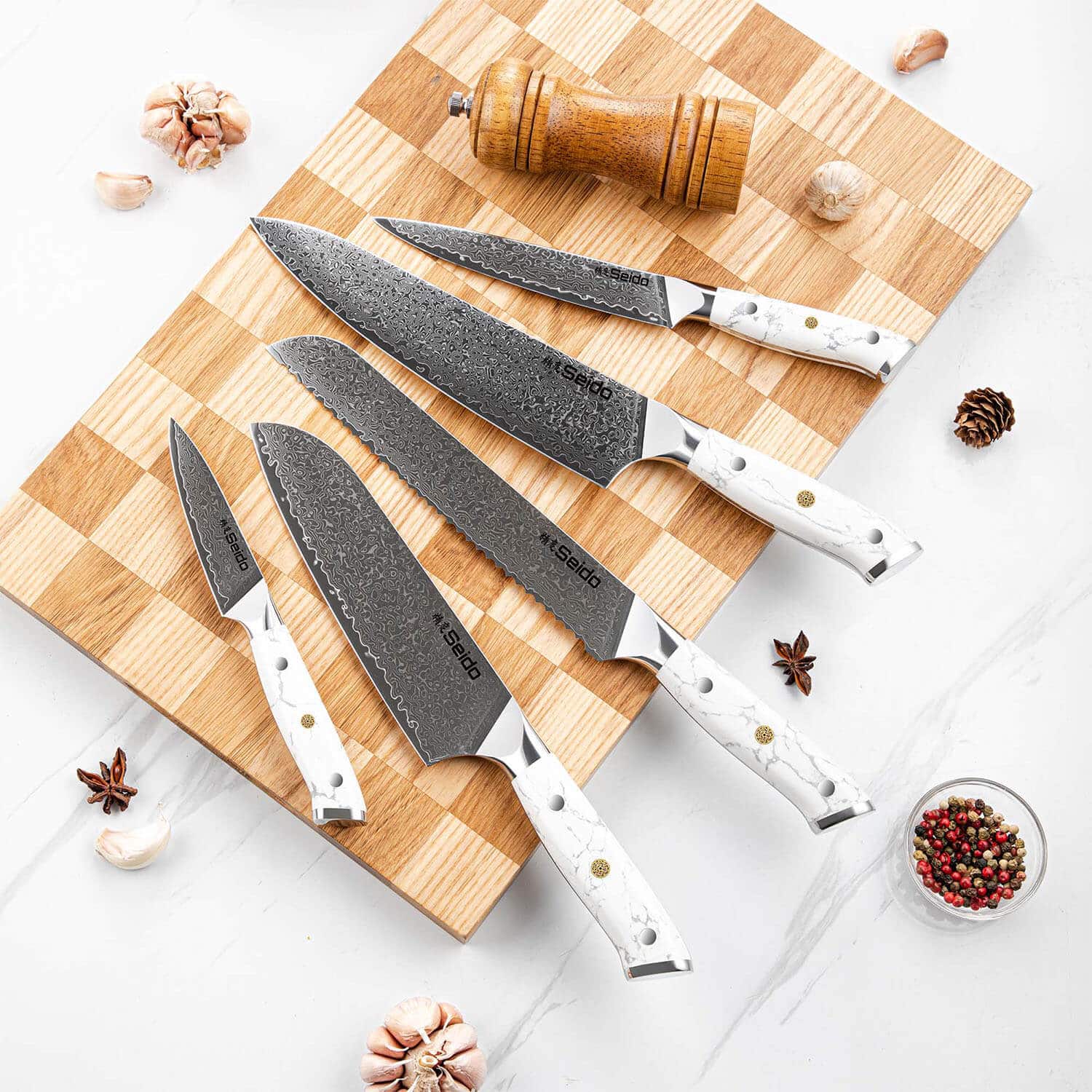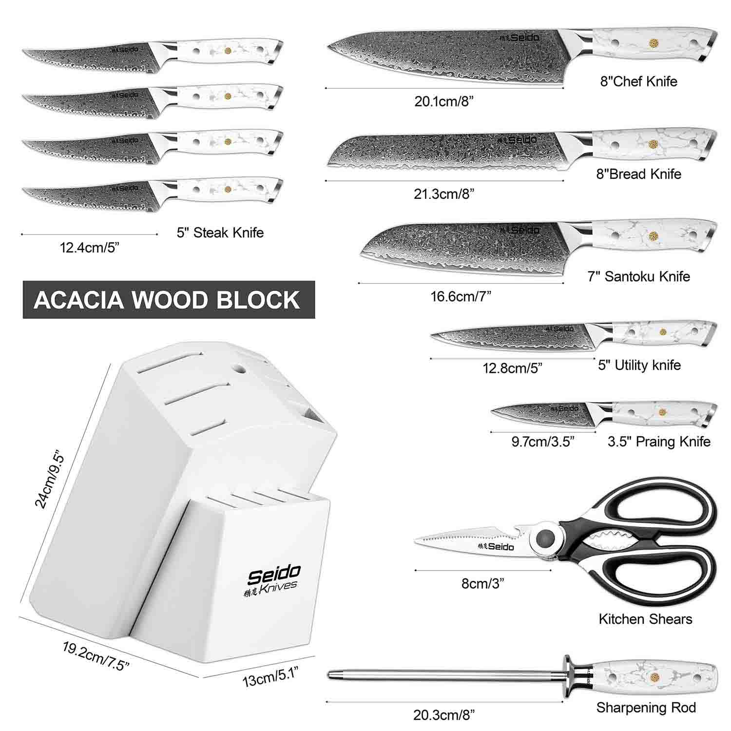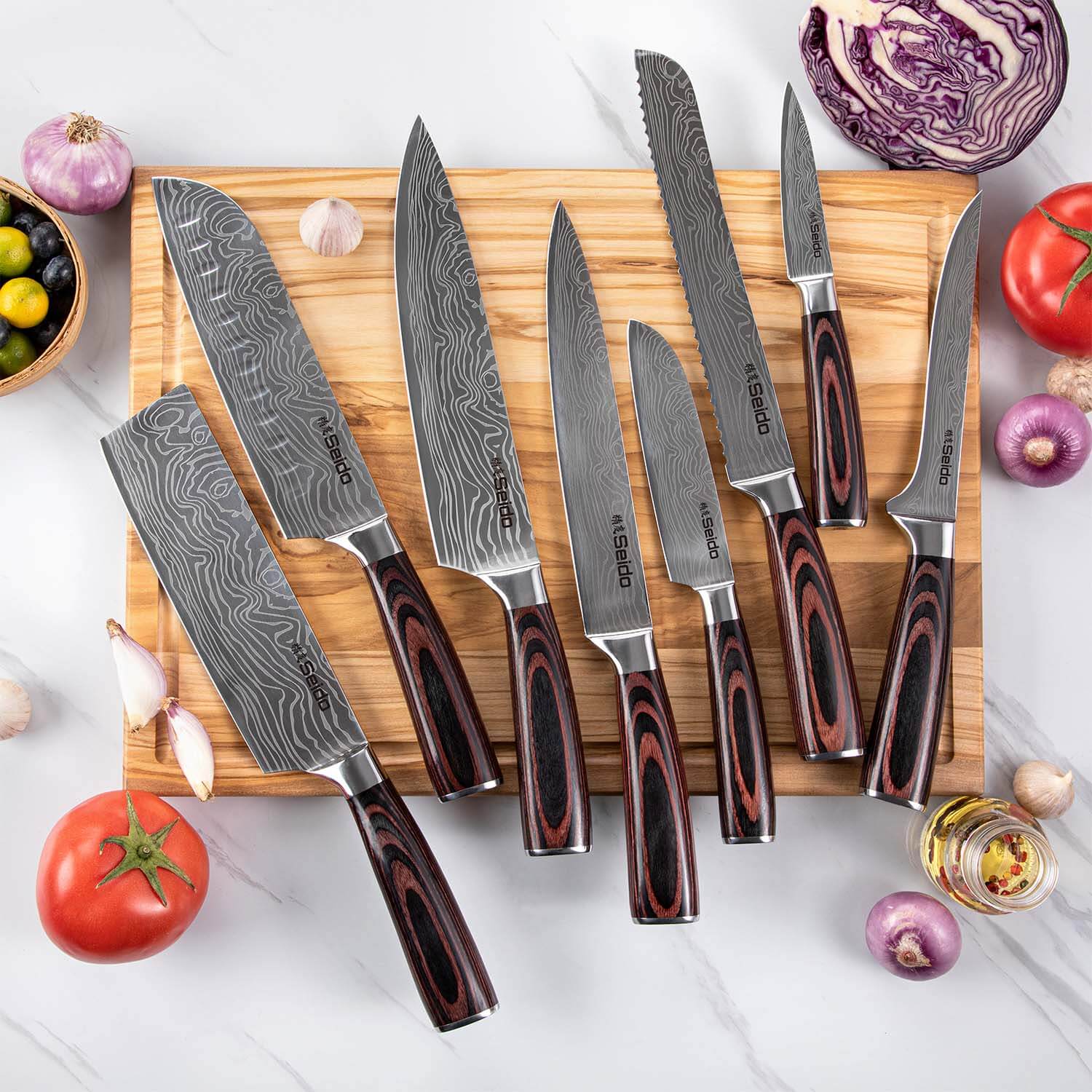 Our Japanese knife block sets are the ultimate chef tools, designed to handle every cooking task, from precision slicing to heavy-duty chopping. Each set includes essential knives for a typical meal prep—chef's, Nakiri, a Santoku knife, boning, serrated utility knife, and more—ensuring you're fully equipped for any cooking challenge.