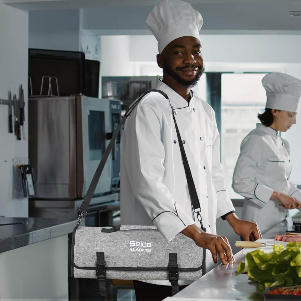 A knife roll bag not only keeps your knives organized and safe, but you can also use it to take your knives anywhere you go. Protect your chef's knives with our Seido knife roll bags.