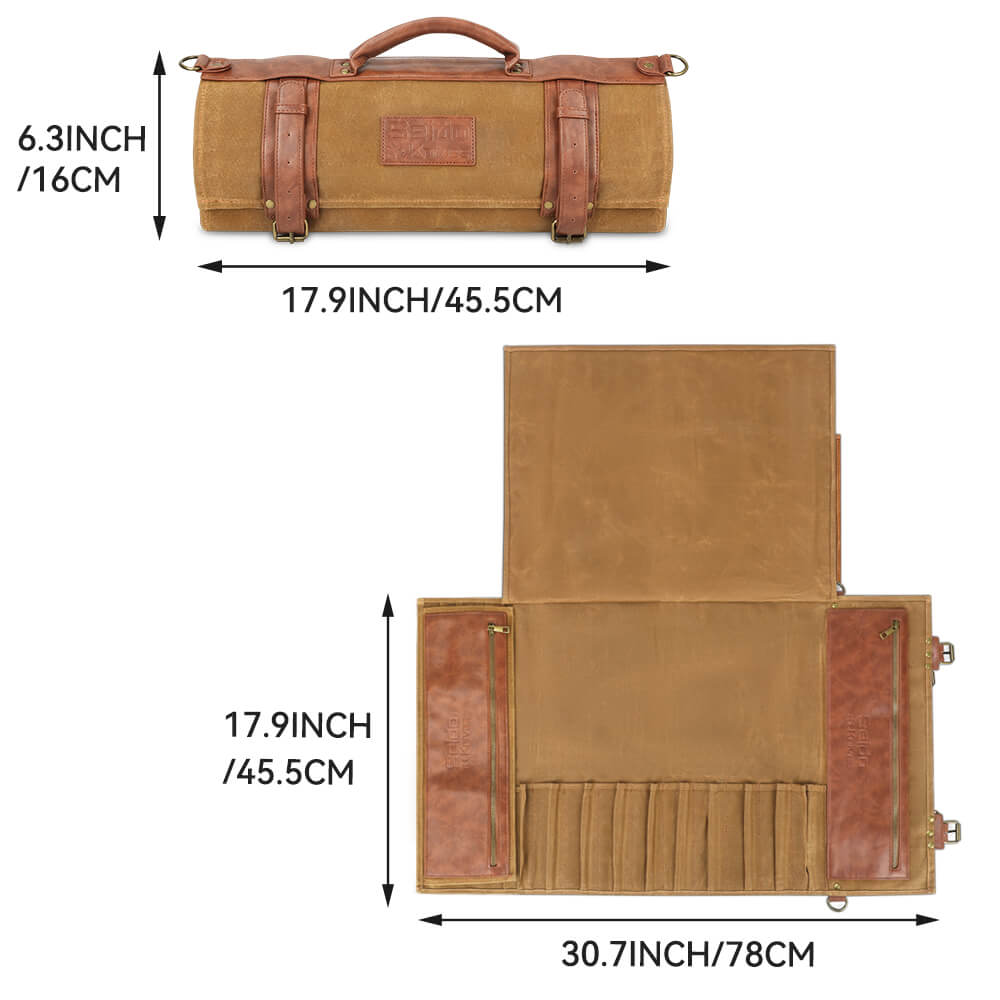 Seido Knife Roll Bag, Heavy Duty Canvas & Leather